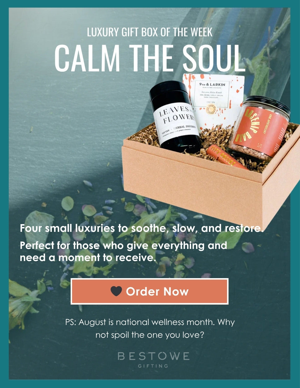 Taking time for yourself can feel impossible — especially when you need it most. This week’s luxe gift box is a gentle nudge to pause, breathe, and reconnect. Whether you’re gifting a friend or giving yourself the care you deserve, the Calm the Soul box is a beautiful reminder that well-being starts with small, meaningful moments.